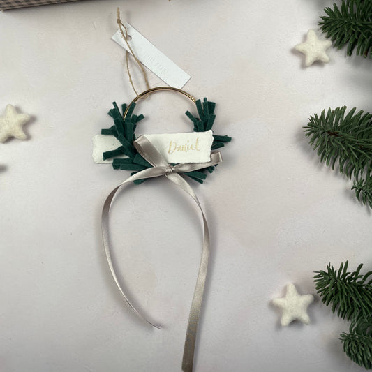 Mini Wreath Decoration - fully adorned with felt sprigs and includes a personalised calligraphy tag