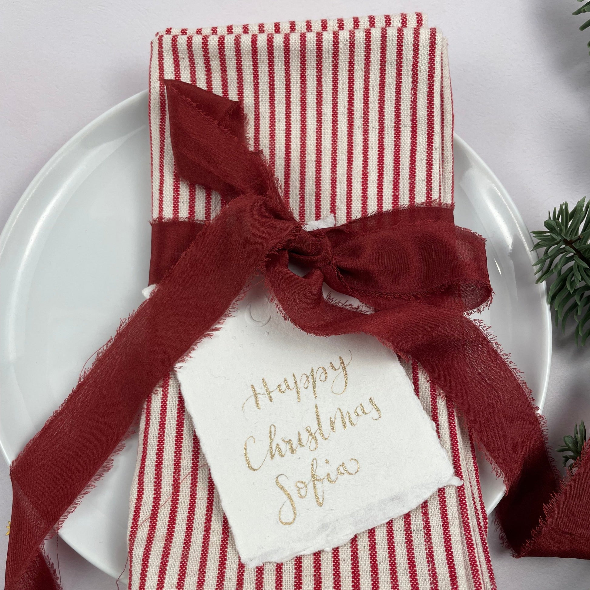 These elegant place cards are the perfect addition to any festive tablescape or could add a touch of sophistication to your gift wrapping.